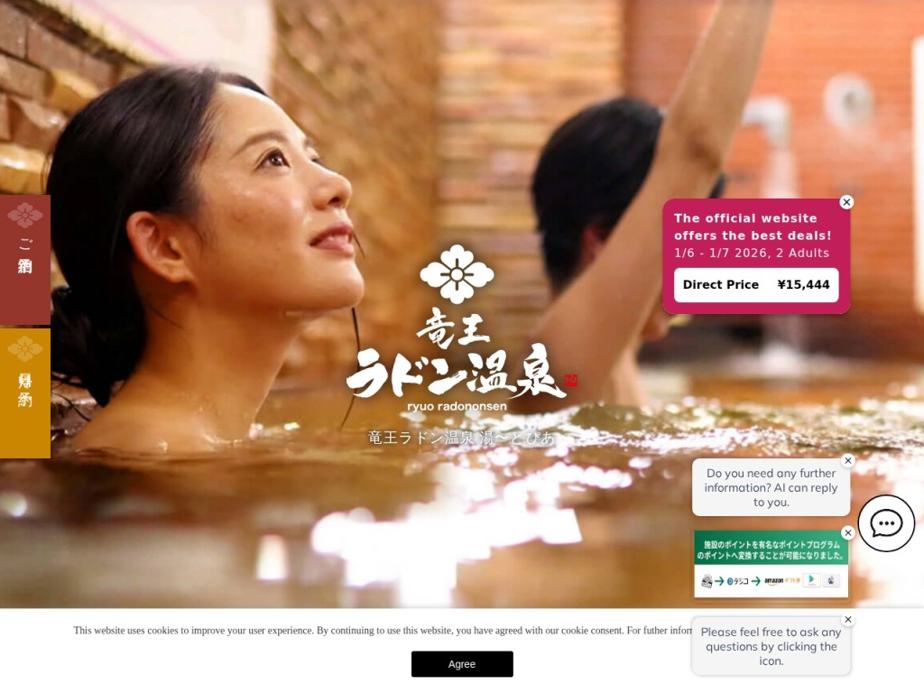 | 竜王ラドン温泉 | ラドンの効能で疲労回復、免疫力向上 | 通年 | 放射能泉 |