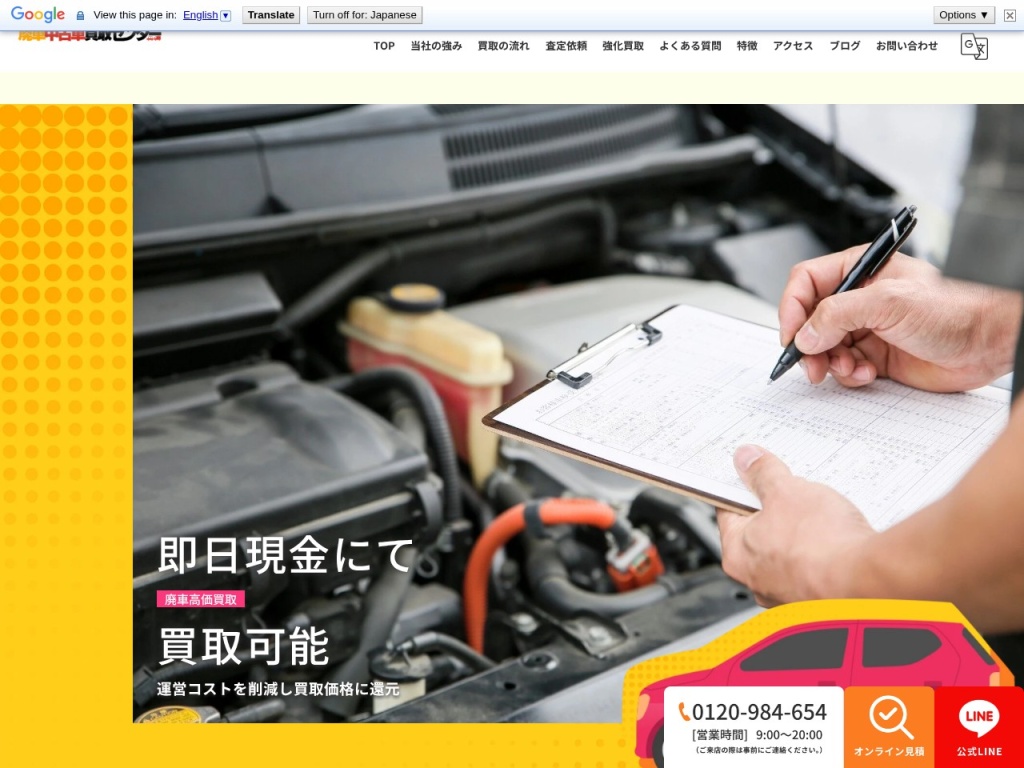 | 廃車中古車買取センター | 完全無料 | 9:00〜20:00(年中無休) | 当日対応可能 |